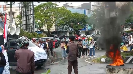 Massa mendatangi kantor kejaksaan menuntut agar mantan Kepala Dinas SDA dan Bina Marga Sultra, Burhanuddin, segera ditahan.