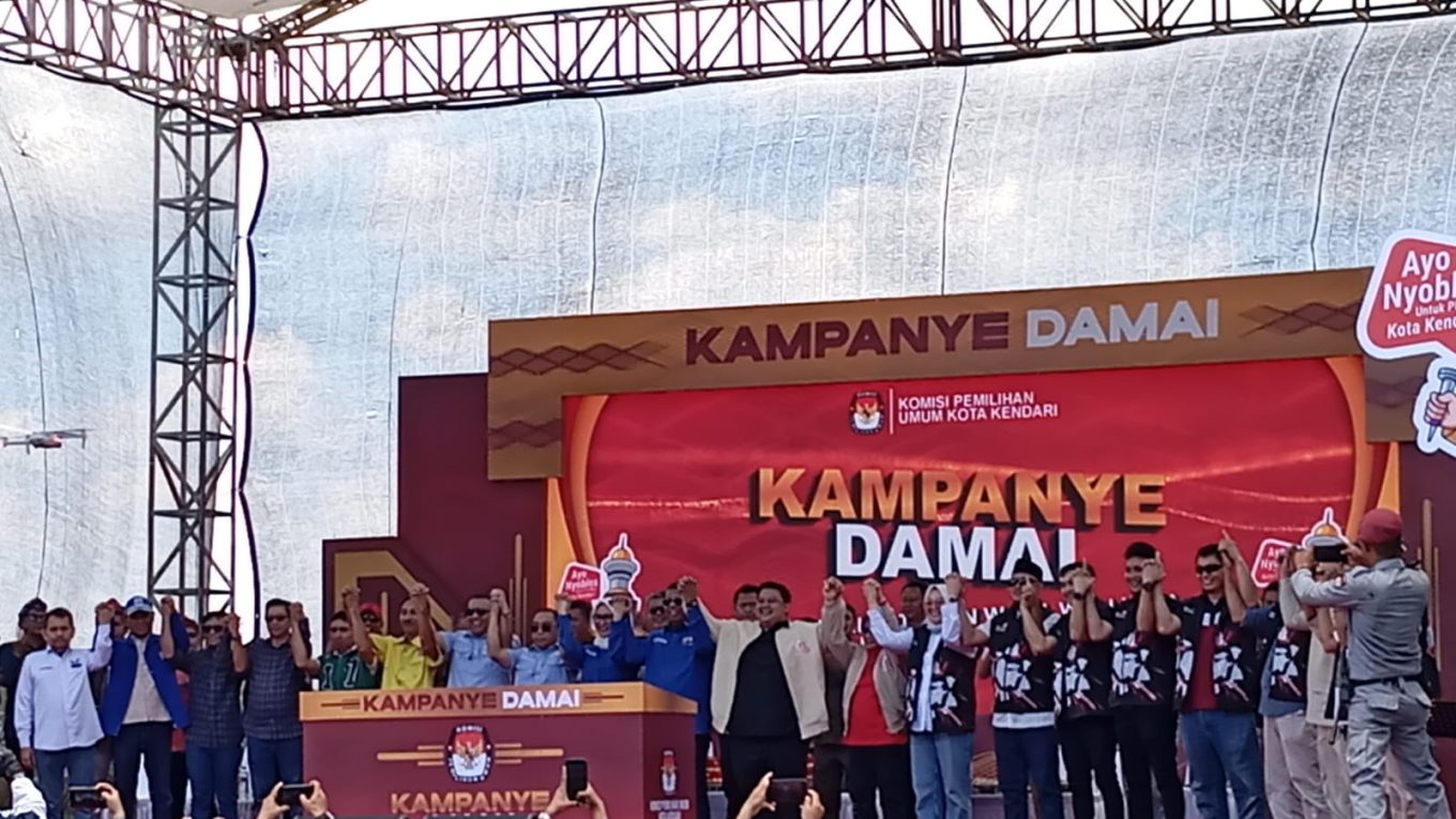 SULTRAMERDEKA.COM – Lima pasangan calon (paslon) Pilwali Kota Kendari deklarasi kampanye damai di Lapangan Benu-benua, Kecamatan Kendari Barat pada Selasa (24/9/2024) siang.