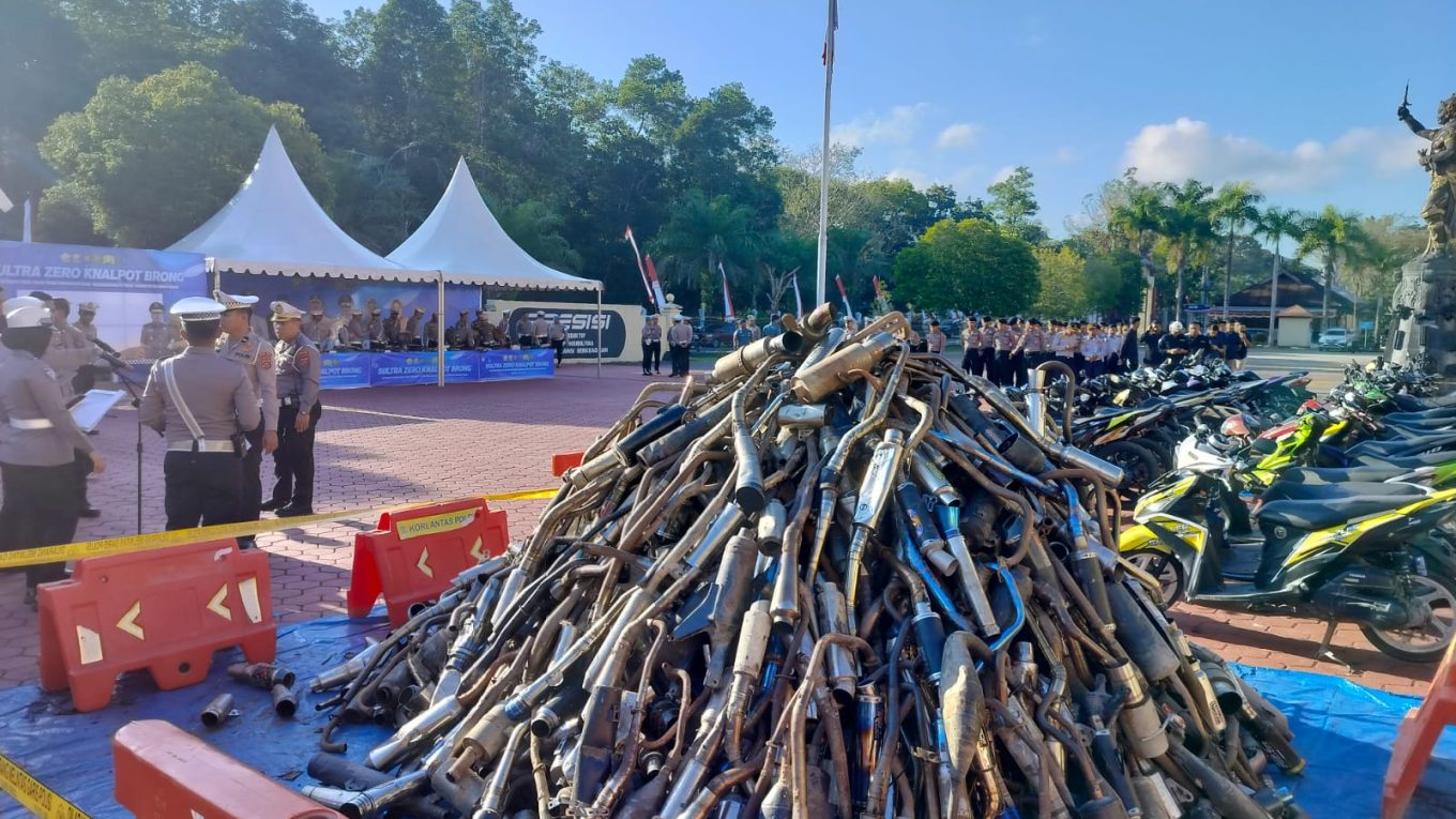 Seluruh knalpot brong hasil sitaan tersebut secara simbolis dimusnahkan pada Selasa pagi, 29 Juli 2025, dalam sebuah seremoni yang digelar di Lapangan Lobi Depan Mapolda Sultra.