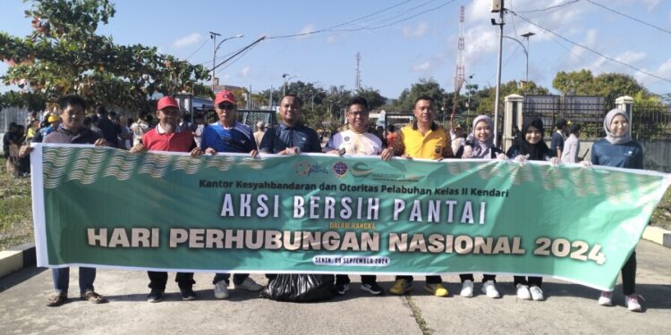 SULTRAMERDEKA.COM – Kantor Syahbandar dan Otoritas Pelabuhan (KSOP) Kelas II Kendari, Sulawesi Tenggara menggelar aksi bersih pantai di Pelabuhan Bungkutoko Kendari pada Senin (09/08/2024).