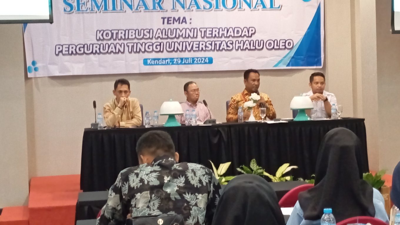 Bakal Calon Gubernur (Bacagub) Sulawesi Tenggara (Sultra), Jurni berbicara di hadapan para mahasiswa dan alumni Universitas Halu Oleo (UHO) di Hotel Horison Kendari pada Senin (29/7/2024).
