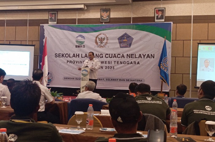 Edukasi dilakukan BMKG melalui Sekolah Lapang Cuaca Nelayan (SLCN) Sulawesi Tenggara yang digelar selama sehari di Hotel Plaza Inn Kendari.