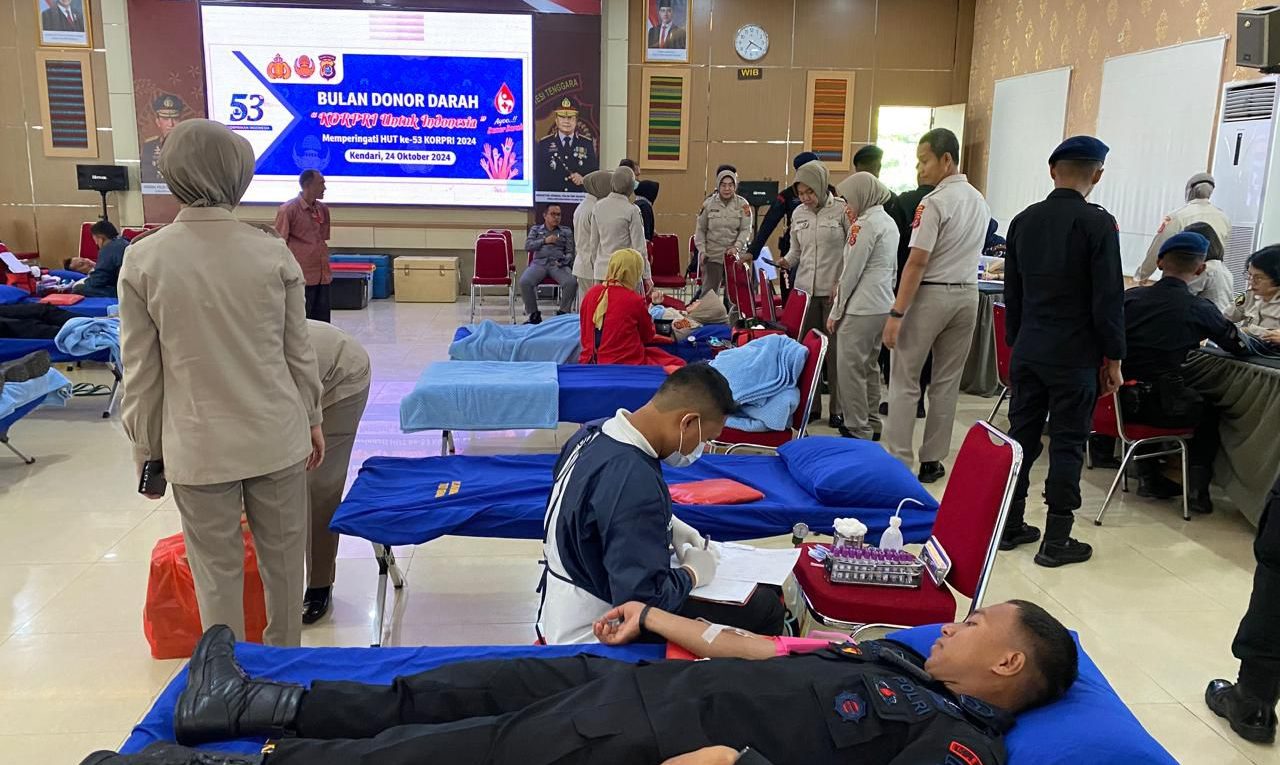 SULTRAMERDEKA.COM – Dalam rangka memperingati HUT Korps Pegawai Republik Indonesia (Korpri) ke-53, Polda Sulawesi Tenggara (Sultra) menggelar kegiatan donor darah.