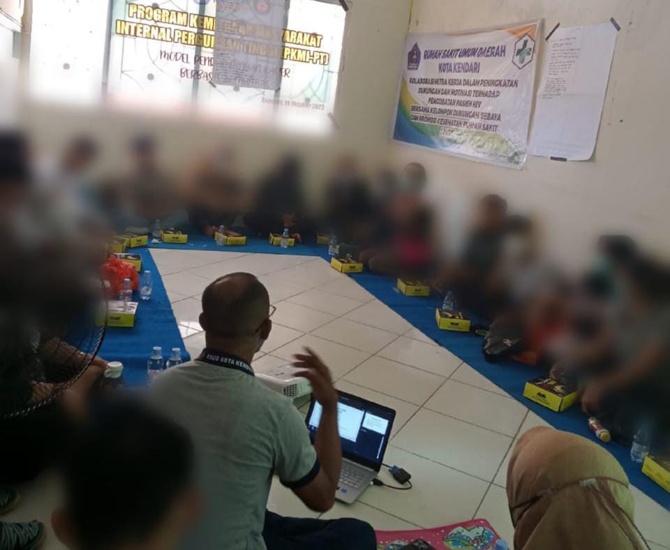 Dosen Fakultas Kedokteran Universitas Halu Oleo (UHO) melakukan model pendampingan kader penderita HIV/AIDS berbasis komunitas kepada para Orang Dengan HIV/AIDS (ODHA) di Aula Poliklinik VCT RSUD Kota Kendari.