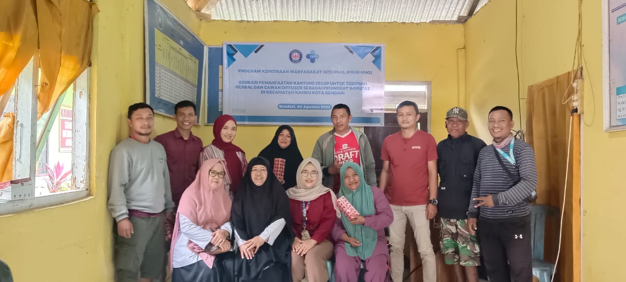 Dosen Fakultas Farmasi Universitas Halu Oleo (UHO) yang tergabung dalam Tim Pengabdian Program Kemitraan Masyarakat Internal (PKMI) mengedukasi masyarakat di Kecamatan Kambu, Kota Kendari pada Rabu, 2 Agustus 2023.