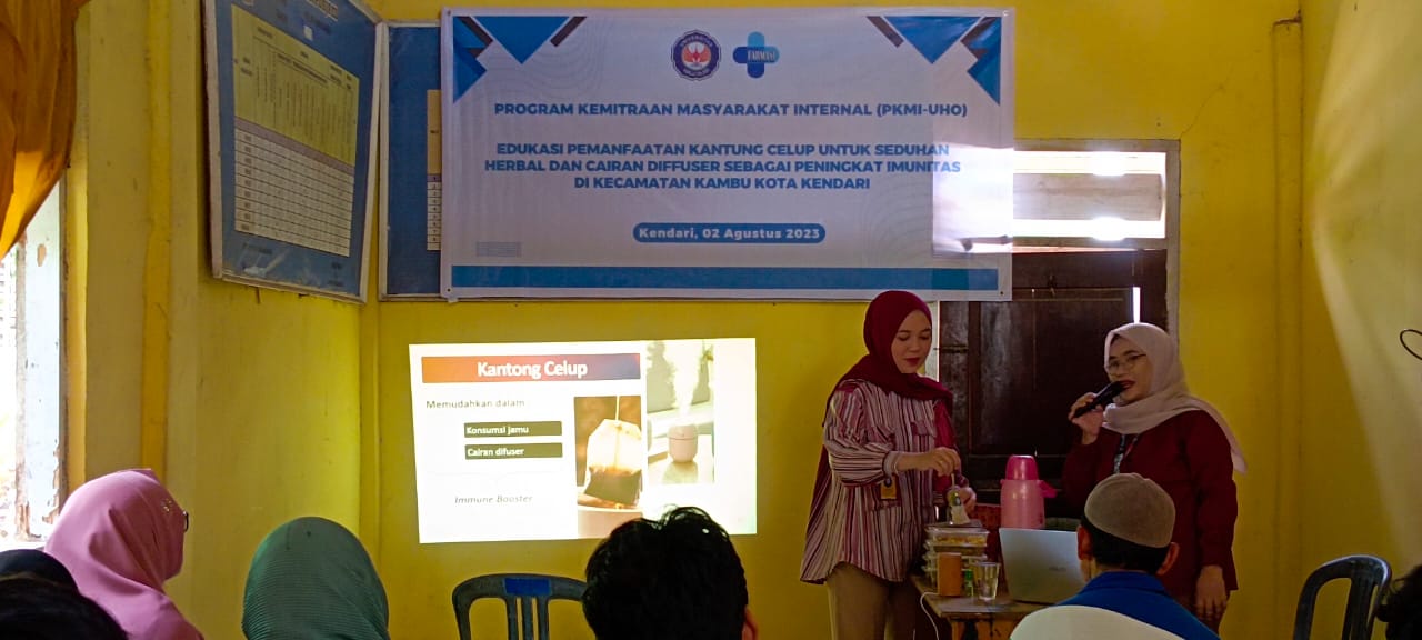 Dosen Fakultas Farmasi Universitas Halu Oleo (UHO) yang tergabung dalam Tim Pengabdian Program Kemitraan Masyarakat Internal (PKMI) mengedukasi masyarakat di Kecamatan Kambu, Kota Kendari pada Rabu, 2 Agustus 2023.