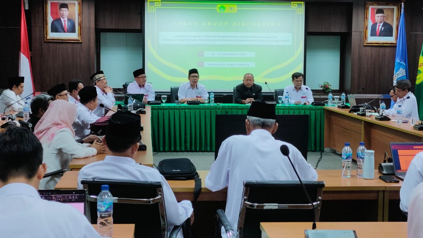 Para Dosen Pendidikan Agama Islam (PAI) didorong memperkuat narasi moderasi beragama dan bela negara di perguruan tinggi Indonesia. Hal tersebut mengemuka dalam FGD yang digelar Asosiasi Dosen Pendidikan Agama Islam (ADPISI) di Hotel Naraya UTK UNJ pada Kamis-Sabtu 15-17 Desember 2022.