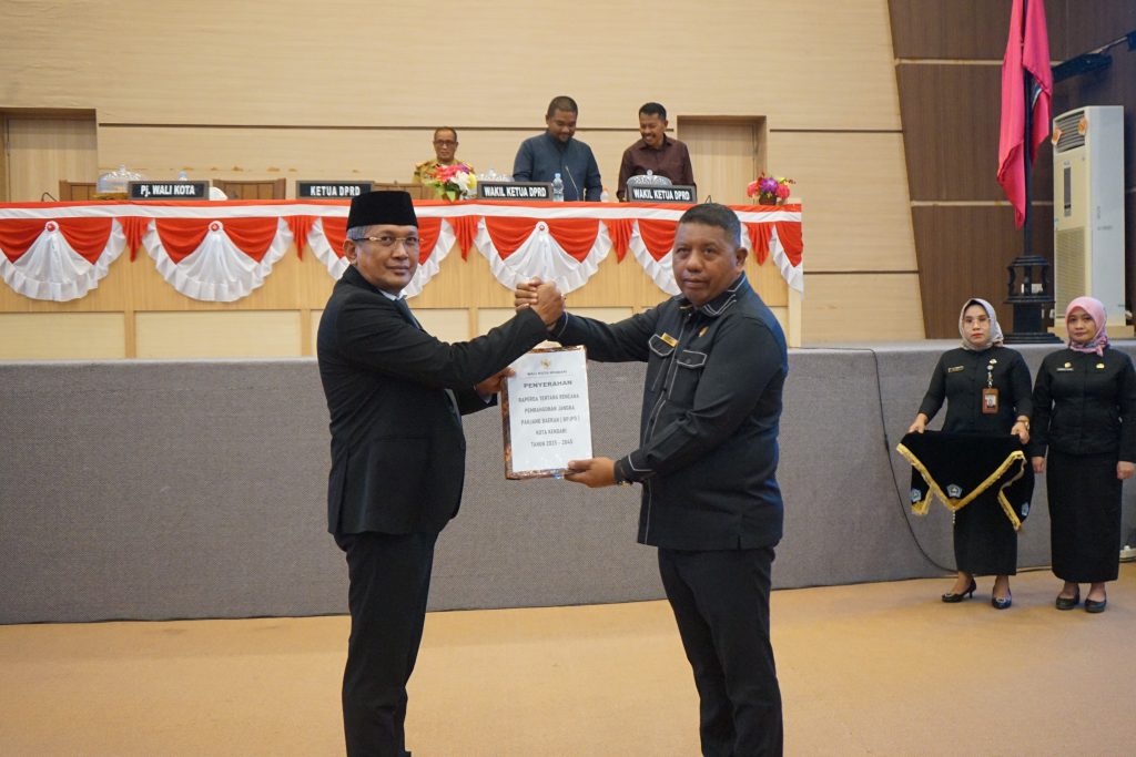 Paripurna diawali dengan penjelasan Pemkot Kendari terhadap Rancangan Peraturan Daerah (Raperda) tentang Rencana Pembangunan Jangka Panjang Daerah ( RPJPD). Selanjutnya penyerahan materi Raperda dari Pemkot Kendari kepada DPRD Kota Kendari.