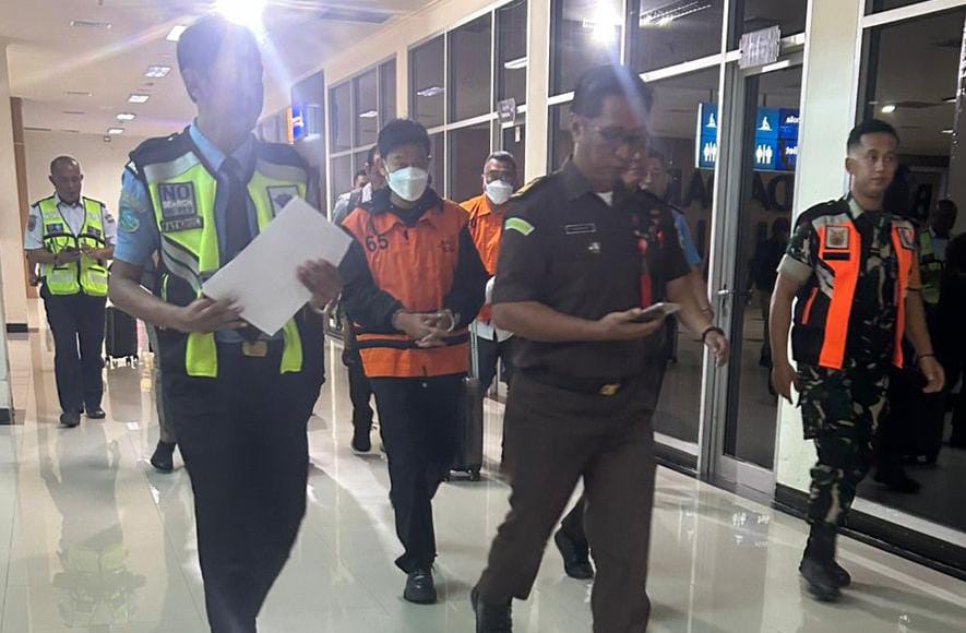 Selama penerbangan, tim KPK melakukan pengawalan ketat terhadap kedua tersangka.