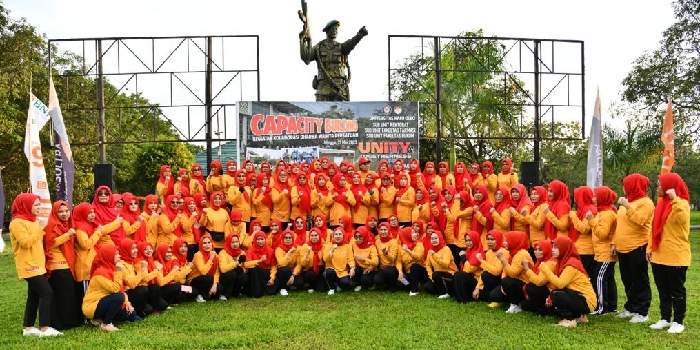 Dharma Wanita Persatuan (DWP) Universitas Halu Oleo (UHO) menggelar Capacity Building di Markas Yonif 725 Woroagi, Boro-boro, Konawe Selatan, Sulawesi Tenggara pada Minggu (21/5/2023).