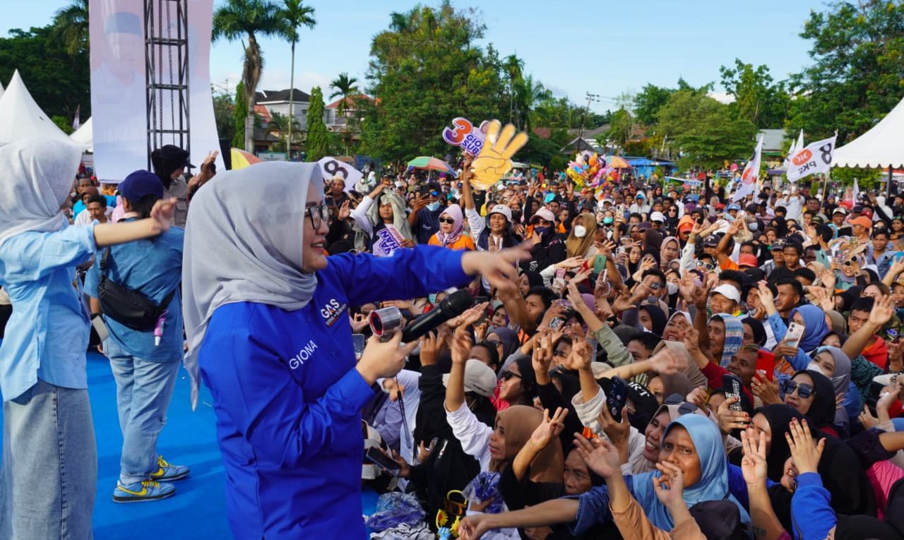 Di tengah sorak sorai, Ifan Govinda juga menyampaikan orasi singkat untuk mengajak warga mendukung Giona-Subhan. “Giona adalah aset kota Kendari. Kalau tidak terpilih, yang rugi adalah masyarakat sendiri. Kalau mau kota ini jadi lebih maju dan berkelas, coblos nomor urut 3,” ujarnya dengan penuh semangat, disambut tepuk tangan meriah.