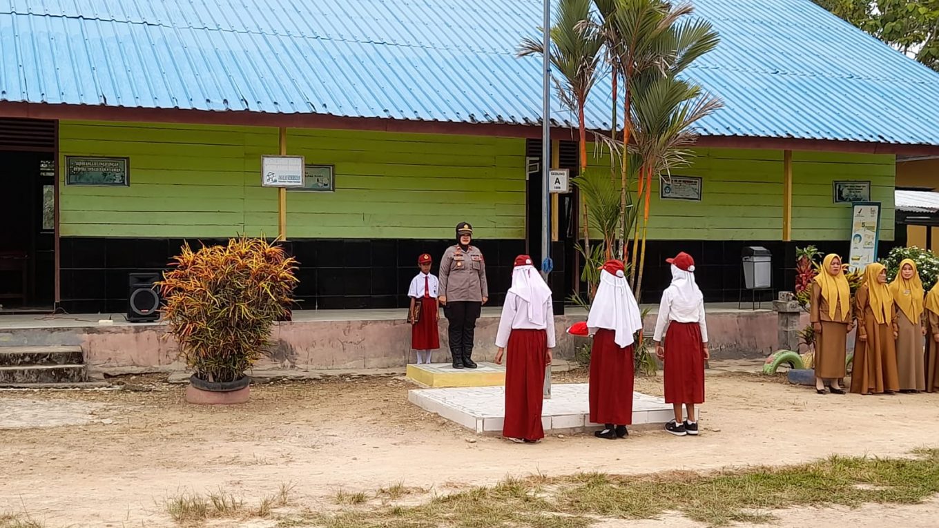 Kapolsek Konda, Iptu Kartini Suryaningsih J. menjadi inspektur upacara di SDN 12 Konda, Desa Pombulaa Jaya, Kecamatan Konda, Kabupaten Konawe Selatan, Sulawesi Tenggara pada Senin, 16 Januari 2022, sekitar pukul 07.00 Wita.
