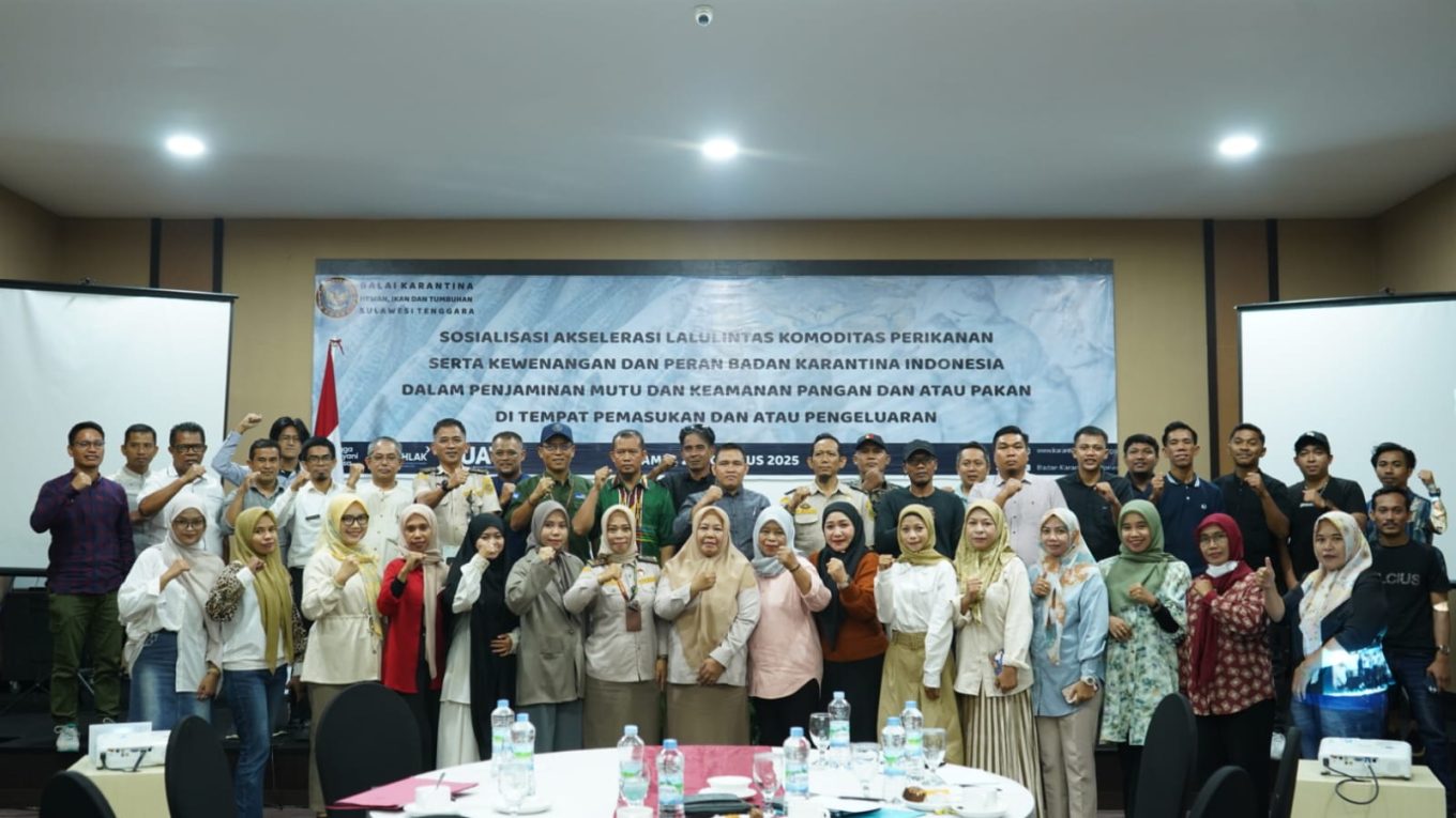 Sosialisasi bertajuk Akselerasi Lalu Lintas Komoditas Perikanan serta Kewenangan dan Peran Barantin dalam Penjaminan Mutu dan Keamanan Pangan maupun Pakan di Wilayah Sultra tersebut menghadirkan pelaku usaha perikanan serta narasumber dari Dinas Perikanan Provinsi Sultra, Bea Cukai, dan Karantina Sultra.