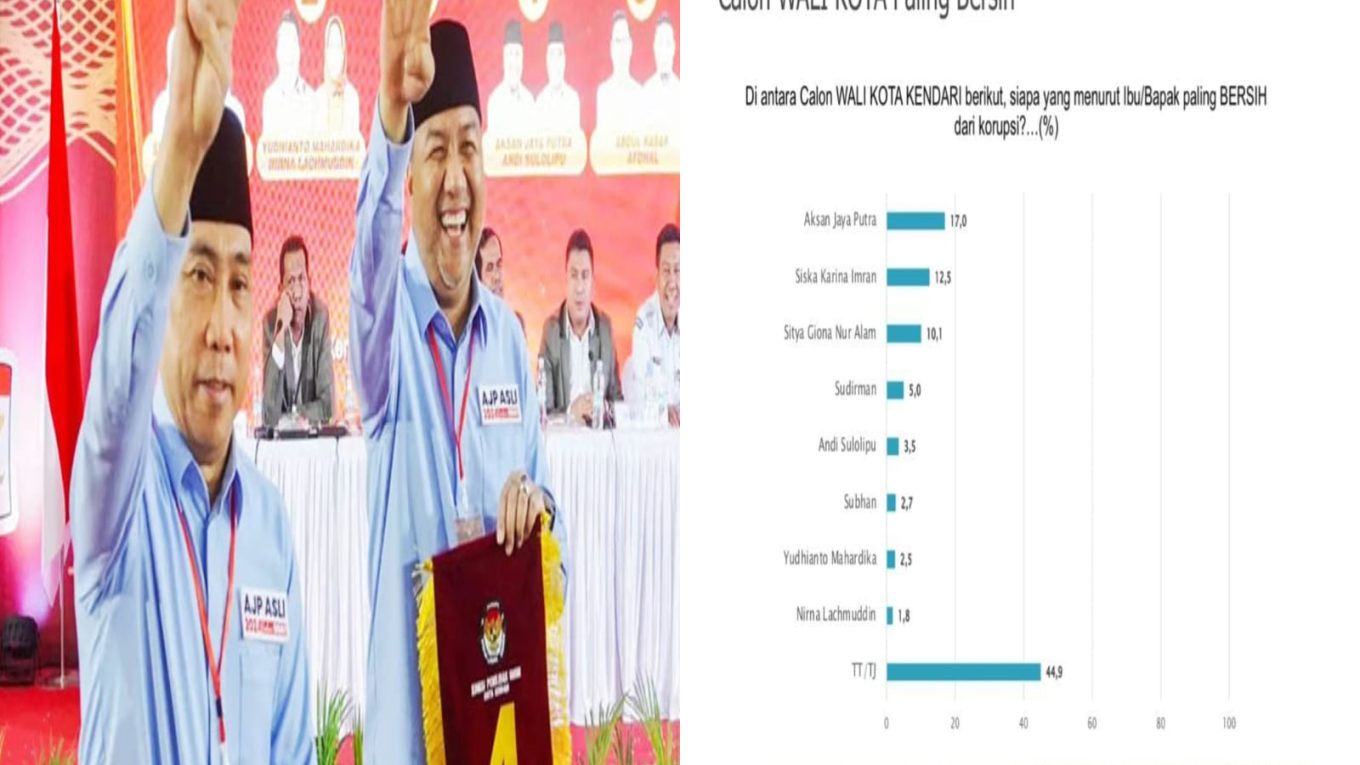 Survei itu juga menggali persepsi publik terkait Calon Wali Kota Kendari yang paling bersih dari korupsi. Hasilnya, AJP berada di posisi teratas atau dinilai paling bersih dari korupsi dengan persentase 17,0.