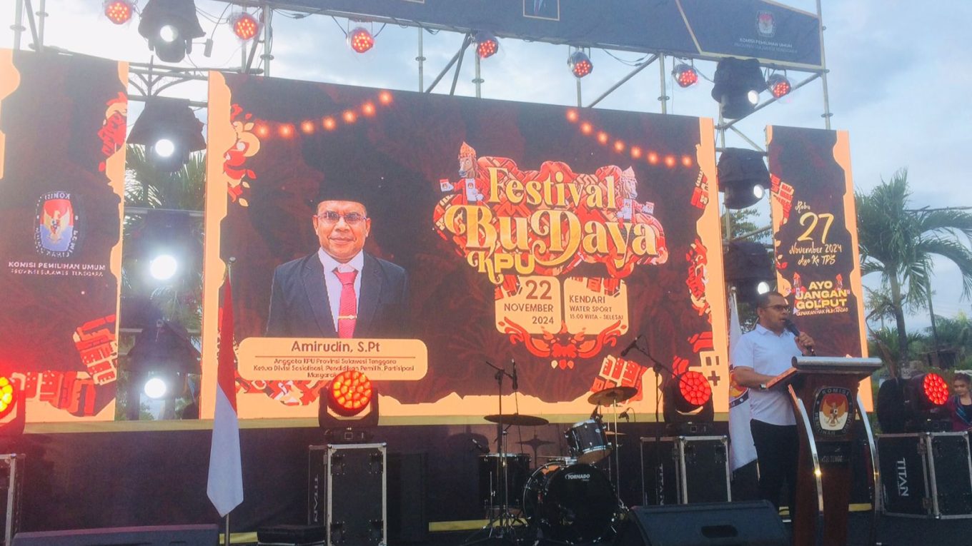Komisioner KPU Sultra yang juga merupakan Kordiv Parmas dan SDM, Amirudin mengatakan bahwa KPU hadir bersama dengan komunitas budaya yang ada di Sultra sebagai bentuk ajakan untuk mendukung Pilkada serentak.