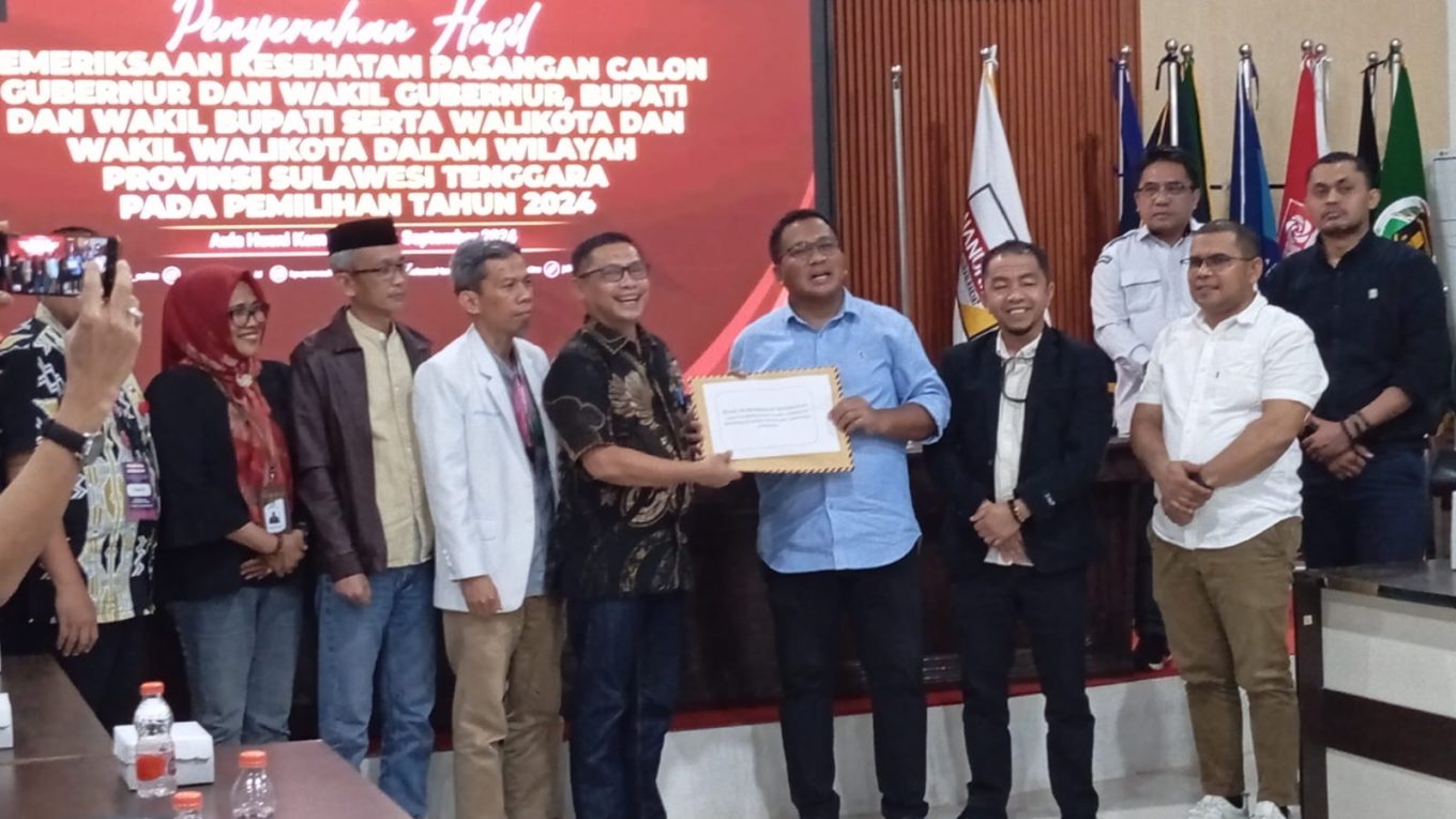 SULTRAMERDEKA.COM – Komisi Pemilihan Umum (KPU) Sulawesi Tenggara (Sultra) menerima hasil pemeriksaan kesehatan empat bakal pasangan calon gubernur dan wakil gubernur pada Senin (2/9/2024), sekitar pukul 22.50 Wita.