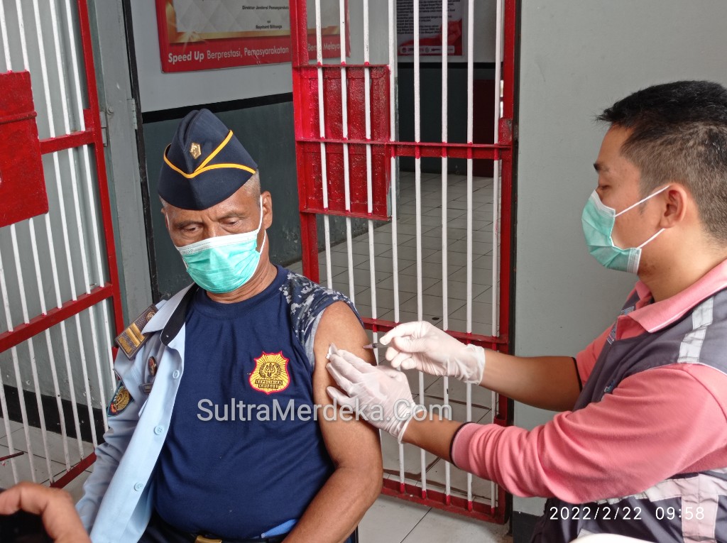 Lembaga Pemasyarakatan (Lapas) Kelas II A Kendari menggelar vaksinasi Covid-19 untuk dosis ketiga atau booster pada Selasa (22/2/2022) pagi.