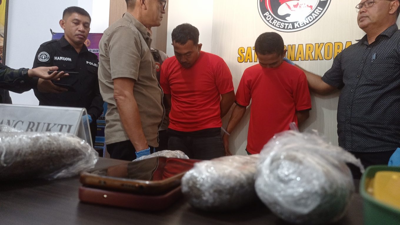 Selain itu, Satres Narkoba Polresta Kendari juga mengamankan dua orang tersangka pria berinisial SAH (27) dan IF (26) yang tertangkap tangan memiliki delapan paket ganja tersebut.