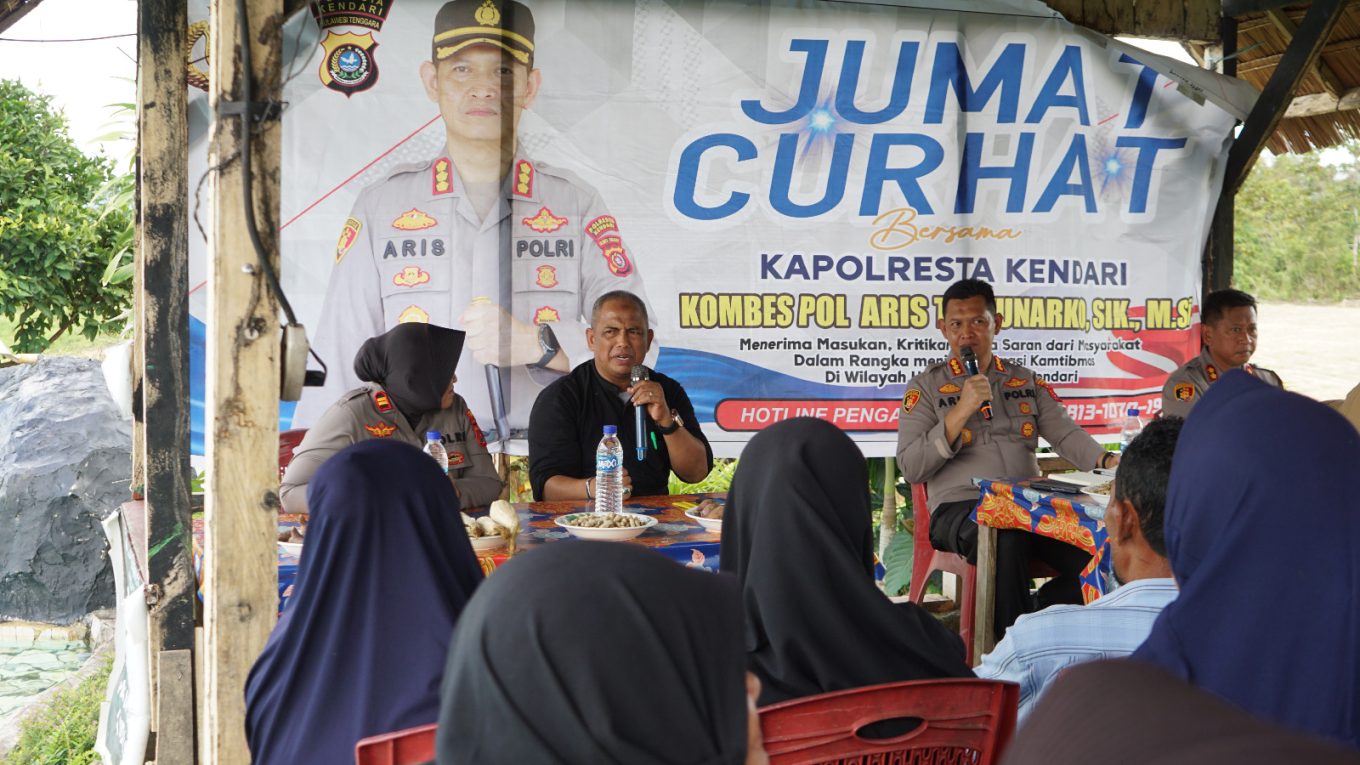 SULTRAMERDEKA.COM – Polresta Kendari menggelar Jumat Curhat dalam wilayah hukumnya di Desa Konda Satu pada Jumat (26/7/2024).