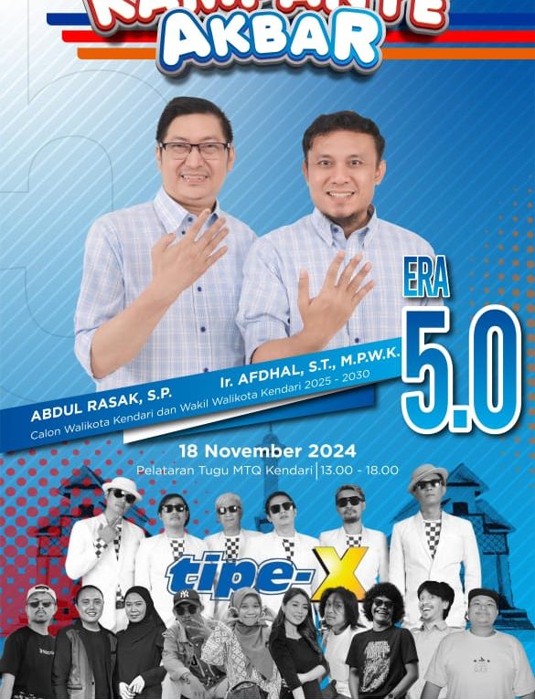 SULTRAMERDEKA.COM – Pasangan calon Wali Kota – Wakil Wali Kota Kendari nomor urut 5, Abdul Rasak – Afdhal akan menggelar kampanye akbar bertajuk “Era 5.0” pada Senin, 18 November 2024.