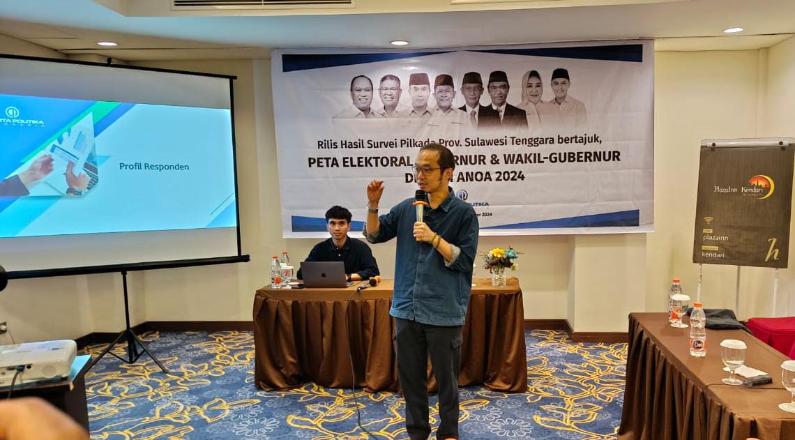 SULTRAMERDEKA.COM – Charta Politika Indonesia merilis hasil survei Pemilihan Gubernur Sulawesi Tenggara (Sultra) 2024 di salah satu hotel dalam Kota Kendari pada Rabu (2/10/2024) siang.
