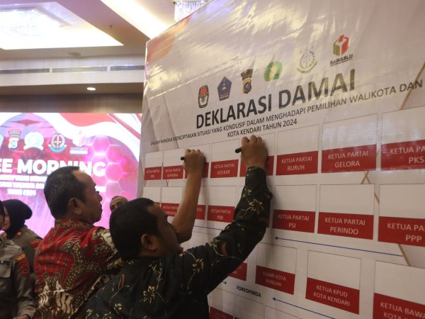 SULTRAMERDEKA.COM – Kepolisian Resor Kota (Polresta) Kendari menggelar Deklarasi Pemilu Damai