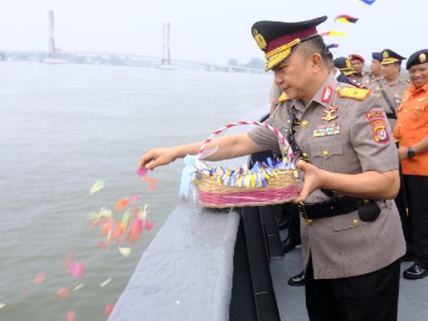 SULTRAMERDEKA.COM – Polda Sulawesi Tenggara (Sultra) menggelar upacara tabur bunga di