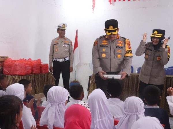 Kapolresta Kendari Bagikan Makanan Sehat Bergizi kepada Siswa TK