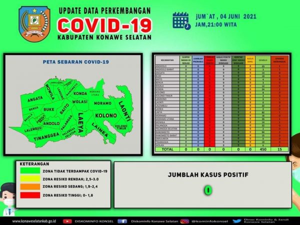 selengkapnyaKabupaten Konawe Selatan per 4 Juni 2021 tak lagi mencatatkan angka