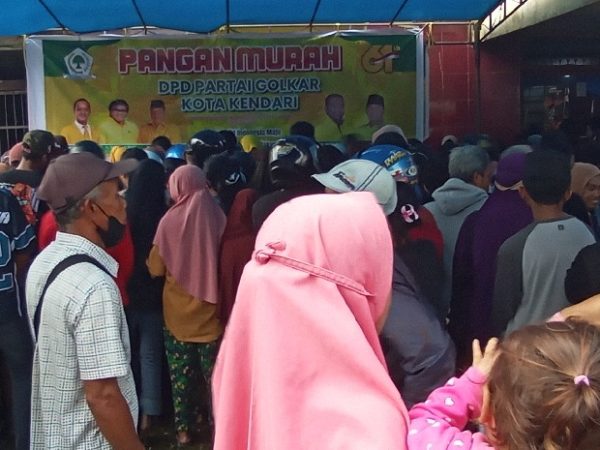 selengkapnyaSULTRAMERDEKA.COM – Partai Golkar Kota Kendari menggelar Pangan Murah di sekretariatnya