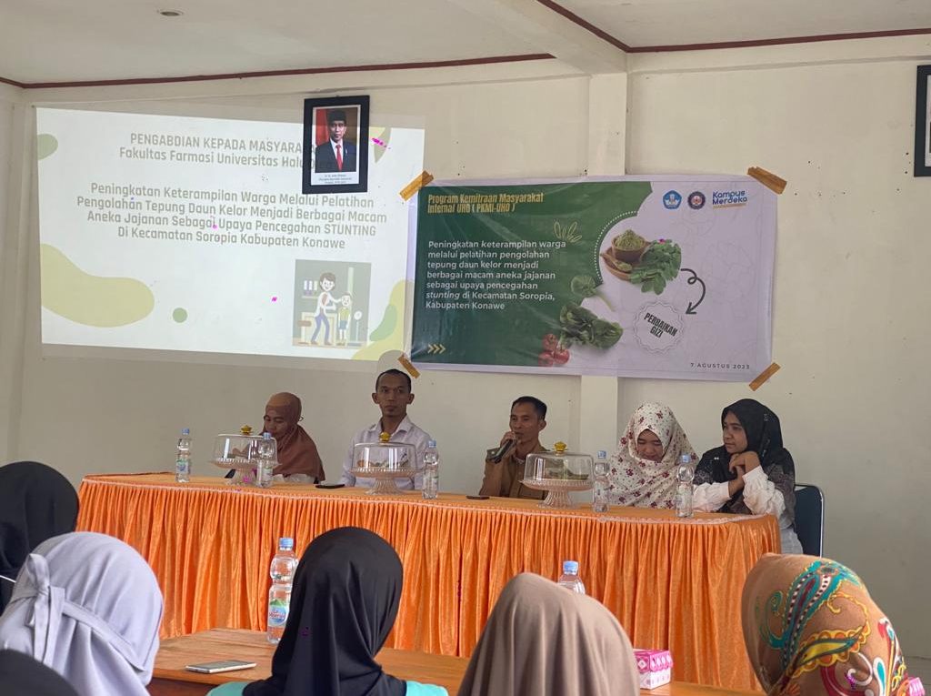 Edukasi dilakukan sejumlah dosen Fakultas Farmasi Universitas Halu Oleo (UHO) dalam bentuk sosialisasi dan pelatihan pengolahan tepung daun kelor menjadi berbagai jajanan.