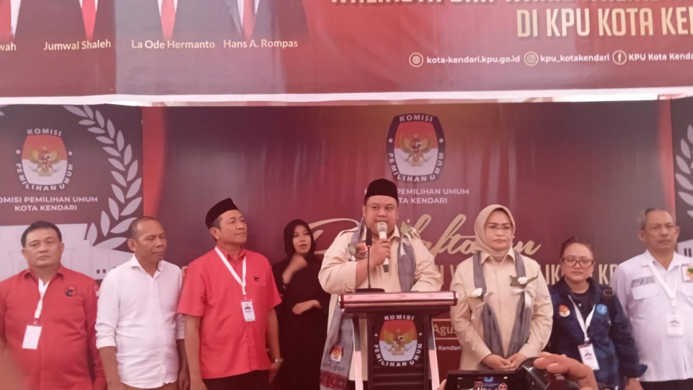 Yudhi-Nirna tiba di KPU Kota Kendari pukul 16.00 Wita didampingi sejumlah partai pengusungnya, yakni PDIP, Gerindra, PKB, Berkarya, dan Prima.